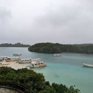 川平湾へ。雨なのにとんでもなく綺麗な海の色でした。