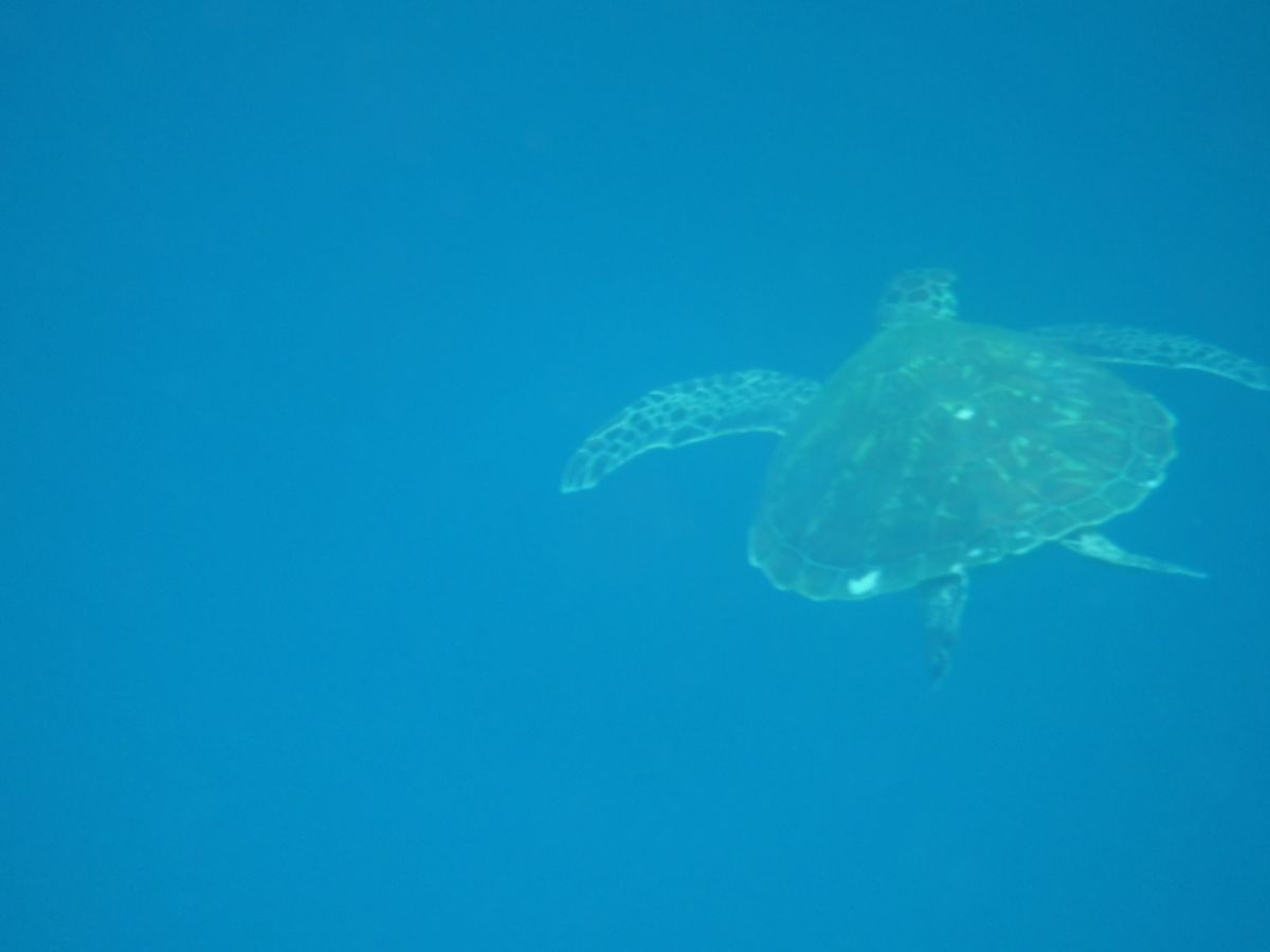 ウミガメスポットはかなり泳ぐので、泳げる人はいい運動になると思います(笑)あと、ウミガメスポットはかなり深いので、思ったよりもウミガメが小さいです。運良く息継ぎに来たウミガメさんと無事ご対面。