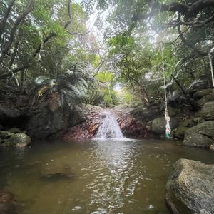 そのあと、近所の滝つぼに行きました。私は無理でしたが、ツアーに参加した若者は、滝つぼに備え付けのロープでターザンごっこをして楽しそうでした。