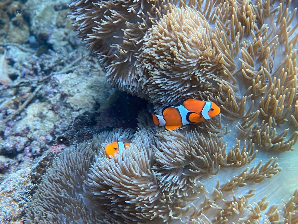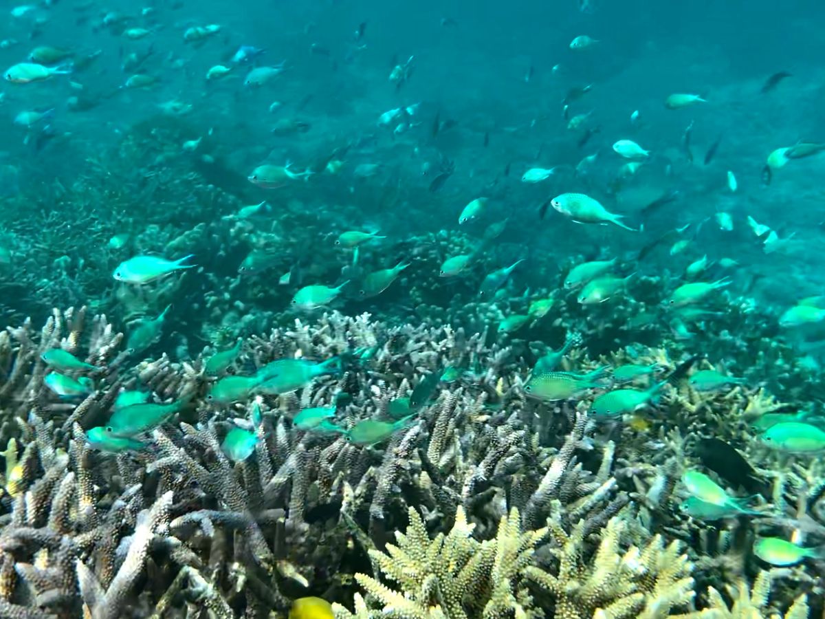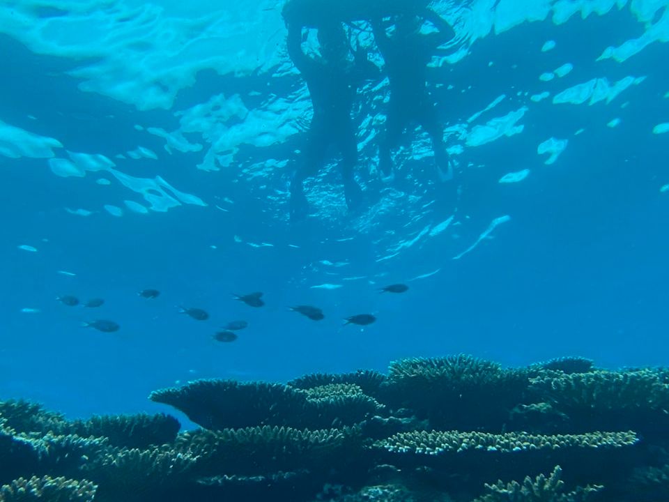 シュノーケルはかなり沖まで行かせていただき、珊瑚を泳ぐ魚たちを観察することができました!