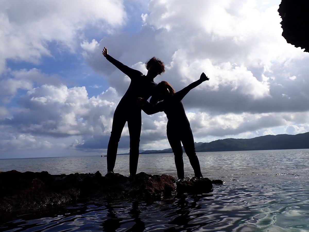 あいにくの雨にもかかわらず、魚が沢山いる所へ案内してもらいました。そしたら、ウミガメに2回も遭遇!めっちゃ可愛かった!また、ウミヘビを優しく捕まえて触らせてくれました。始まる前は少し不安げだったシュノーケリングが初めての母子1ペアは感動して、毎年行きたいと言ってました!その後青の洞窟は干潮のため、探検に切り替わってこれまた感動!干潮ならではの絶景写真も撮れました★最後に滝壺に案内してもらい、子ども達は大興奮!つられて母もダイブしました(^ ^)ガイドのぐっさん最高!ありがとうございました‼︎