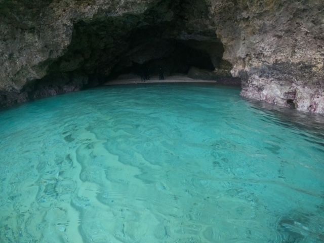 夏場の洞窟前は、台風接近時以外ほとんど荒れておりませんので、次回お越しの際は