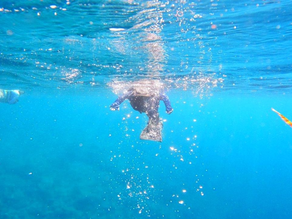 初めてのシュノーケルでウミガメと泳げた事は本当に奇跡ですね(笑)