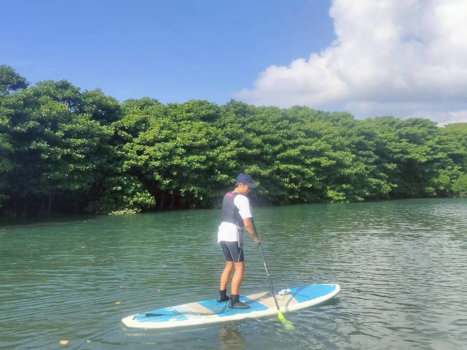 午前はマングローブが川の両側に生い茂る宮良川でSUPをしました。初めてのSUPでしたが、ちゃんとレクチャーしてくれますし、進むペースもグループで合わせてくれるので、ゆったりした気持ちで自然を満喫しながら楽しめます。午後は本格的なシュノーケルが出来ます。ガイドさんが連れて行ってくれるルートは期待以上でした。写真データも頂けますがご自身のカメラの持参をおすすめ。天候によるのでしょうが、海の深い所まで見える透明度と珊瑚礁、たくさんの魚が泳ぐ自然を体験出来て最高です。