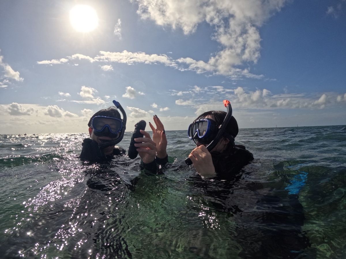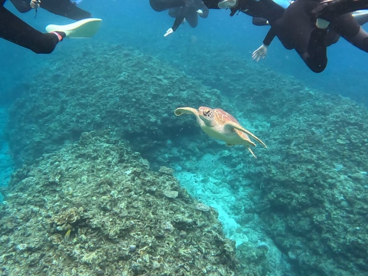 初めてのシュノーケリング体験でしたが、スタッフの皆さんがとても親切で安心して楽しむことができました。カンタさんをはじめ、気さくで明るいお兄さんたちが丁寧に案内してくれて、大きな珊瑚礁や色とりどりの魚がいるスポットまで連れて行ってくれました。運よくたくさんのウミガメにも出会い、一緒に泳ぐ貴重な体験ができて感動!自分たちでは撮れないような素敵な写真もたくさん撮ってもらい、思い出に残る最高の時間になりました。ありがとうございました。