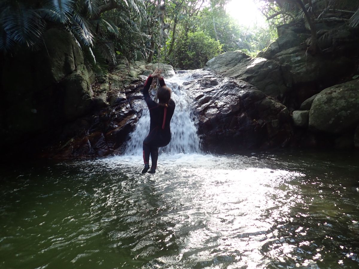 それから滝壺がある場所に案内してもらい、ロープを使って滝壺にダイビング。3月でウェットスーツを着ていましたが、とっても冷たかったですよ。