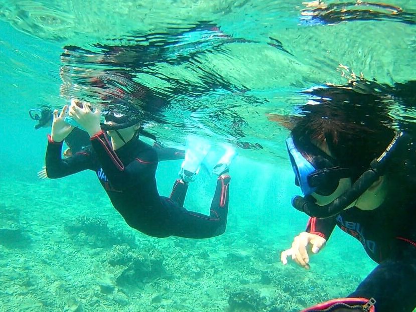 インストラクターの方が丁寧に指導してくれて、非常に楽しかったです。時期もあり、最初は寒かったですが、徐々に慣れてきました。ウミガメが海面まで上がってきてくれて、ツーショットができたのはとても嬉しかったです。