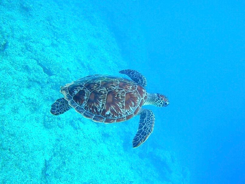 青の洞窟には潮が悪く行けなかったのですが、ウミガメには2匹も会うことが出来ました!!ウミガメが息継ぎするまで上から追いかけて、上がってきたタイミングで物凄い急接近しました!写真も撮っていただき、まだ見れてないのですが、送って貰うのが楽しみです!!