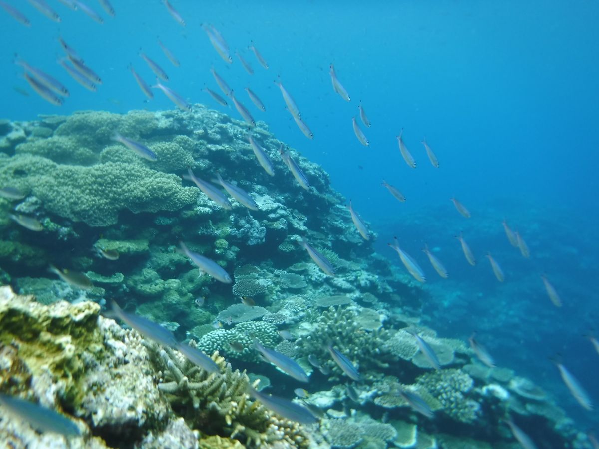 シュノーケルは波の関係で遠浅の海岸から入ったが、魚影の多い場所を丁寧に案内してくれた。