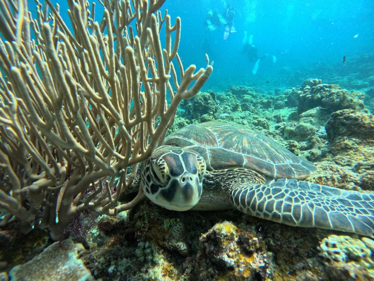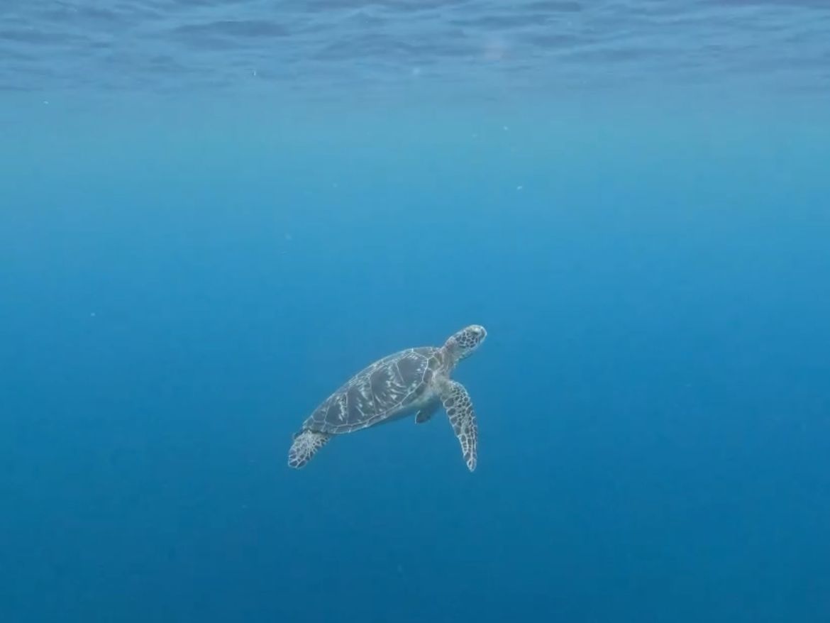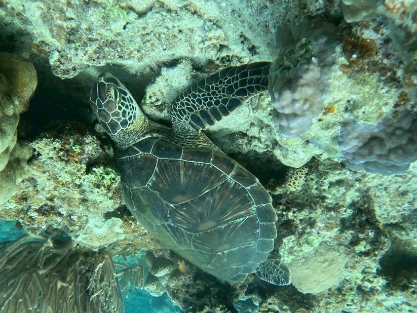 珊瑚礁の上でウミガメを発見した瞬間の感動を共有できたこと、スタッフ一同喜んでおります。