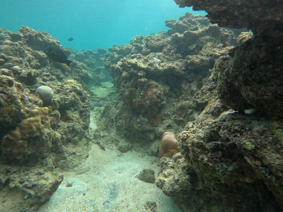 しかし自力でたどり着いた場所には、水深の深い所にウミガメのスポットがありました