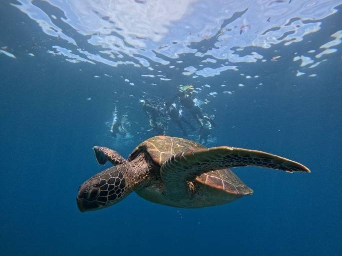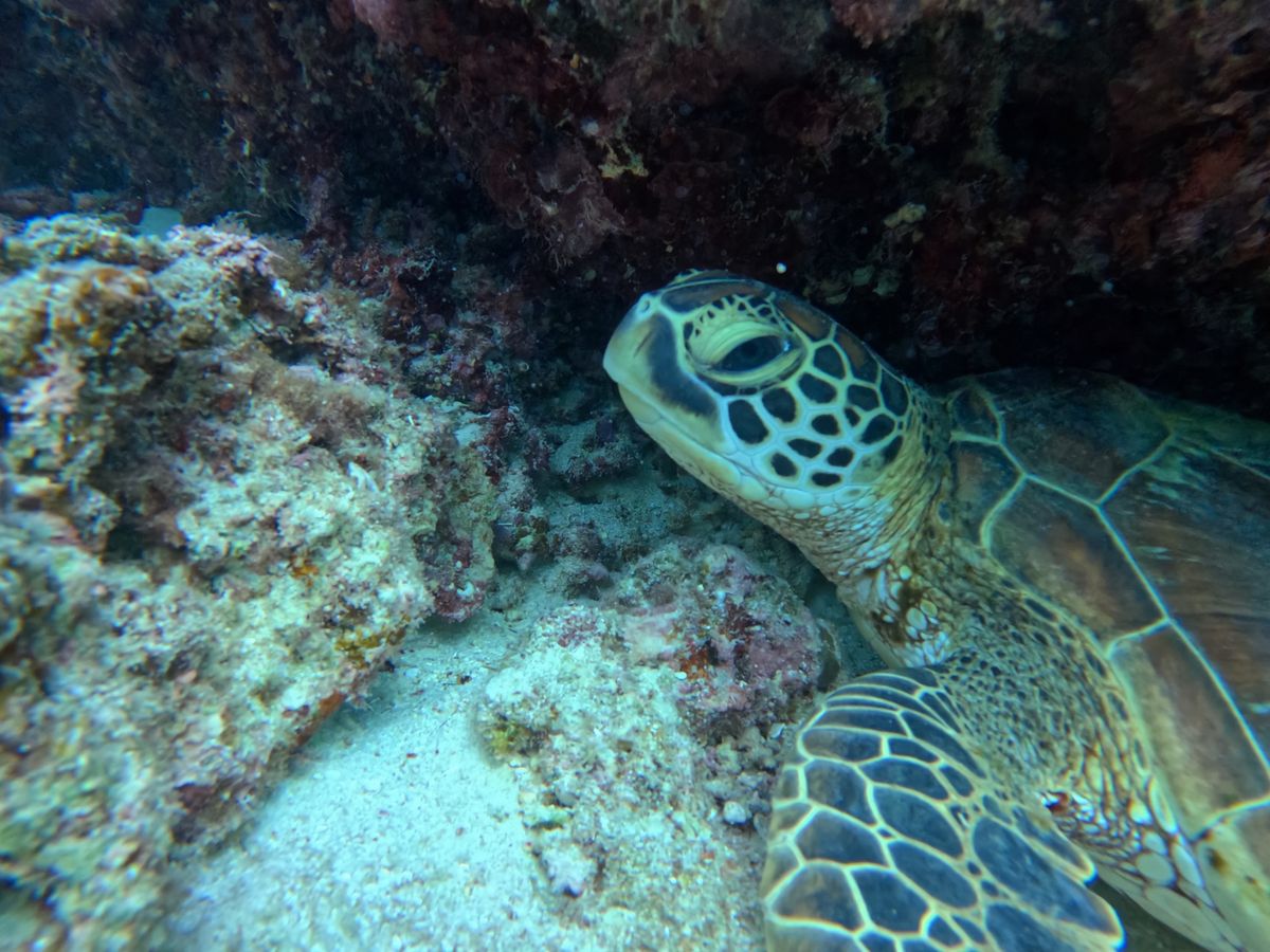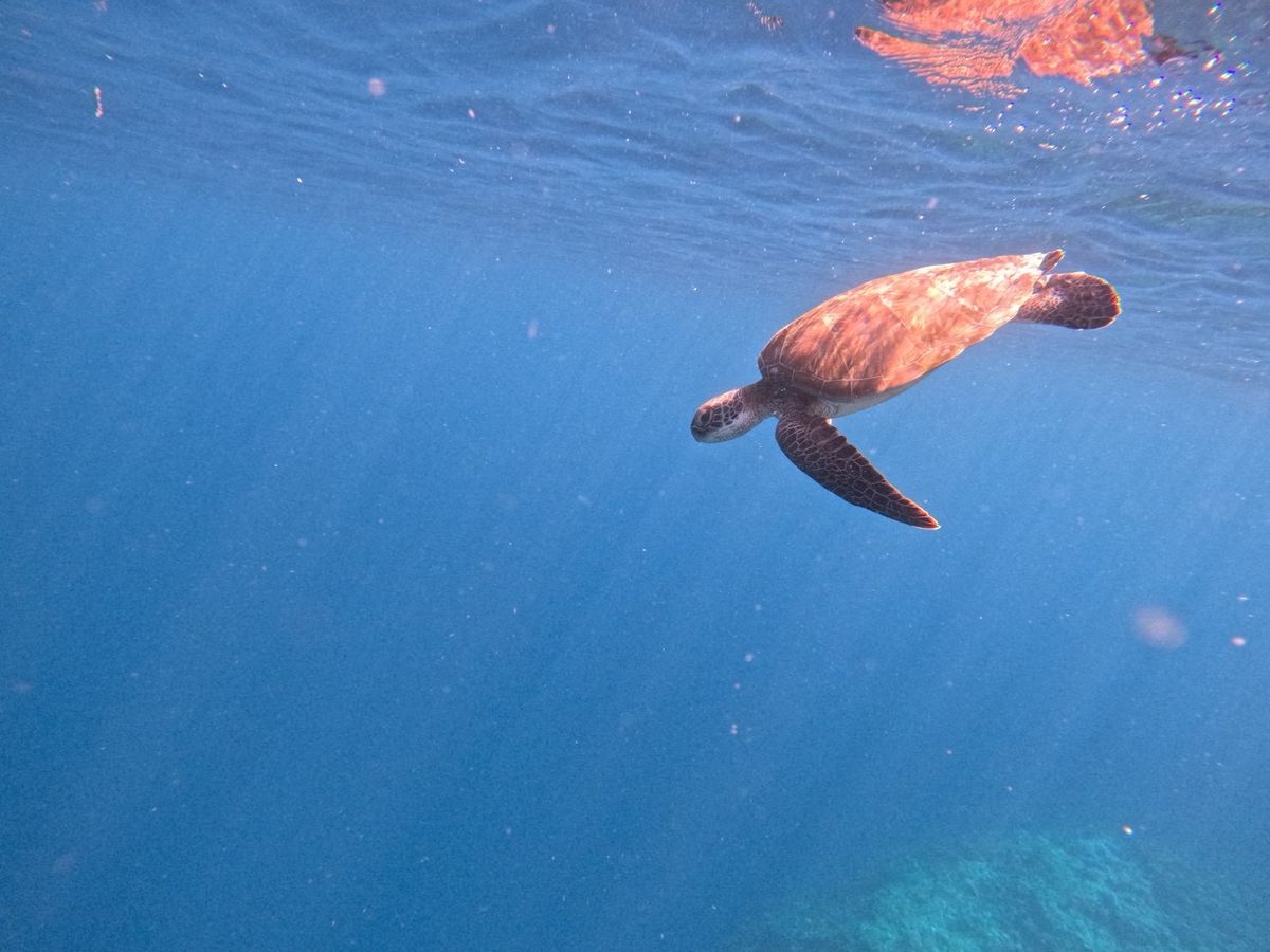 少しの時間だけでしたが(ウミガメの泳ぎが速すぎて)ウミガメと一緒におよげてとても幸せな時間でした。