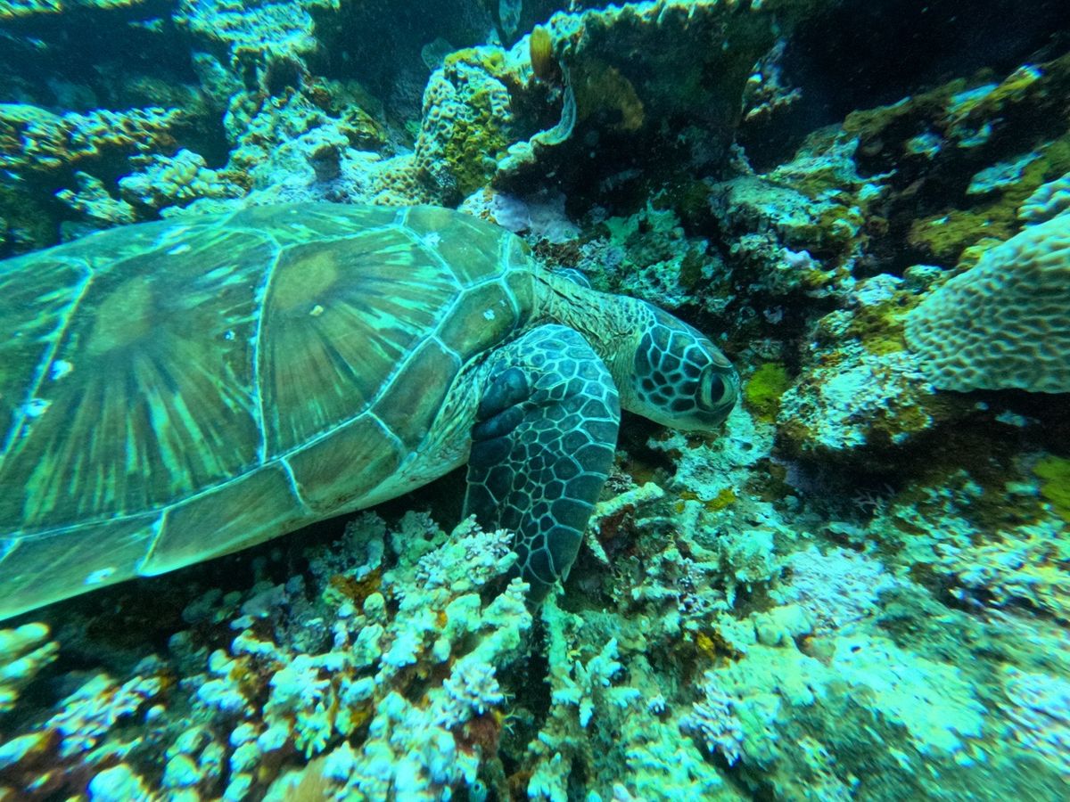 残念ながら海亀は寝ていたようで見れませんでしたが、潜って至近距離の写真を撮っていただき感動しました!