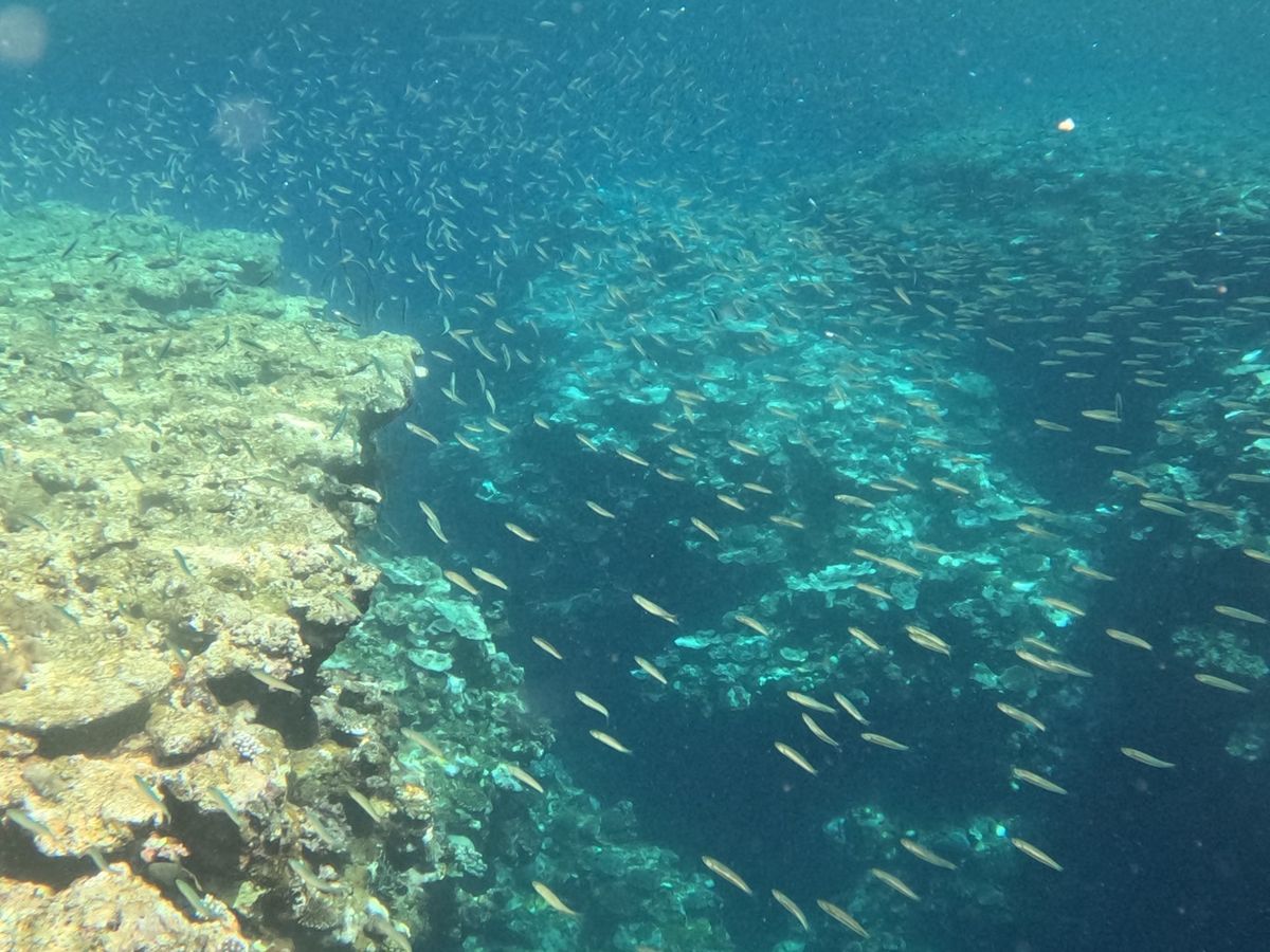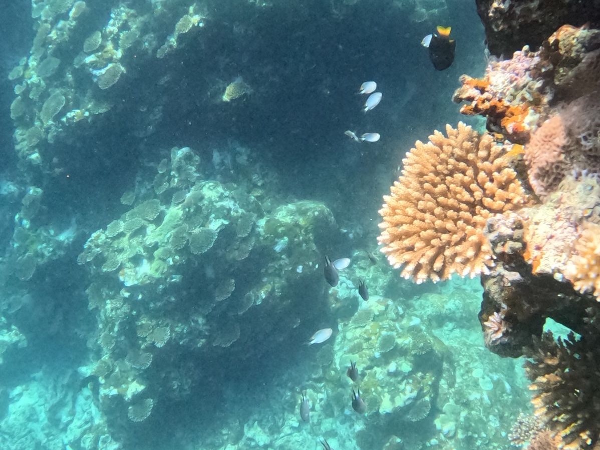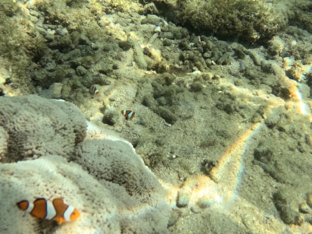 海の中に入ると、水が想像以上に透き通っていてカラフルな魚たちがたくさん泳いでいて、水族館の中に入り込んだみたいな気分になりました。