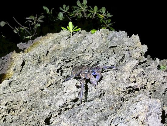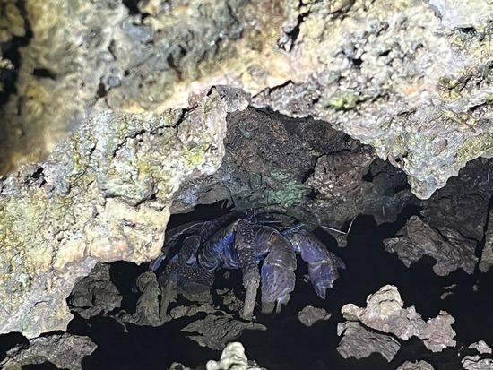 車で一般の人では立ち入れないようなポイントに行き、1時間ほど探索し念願のヤシガニを3匹見ることができました!