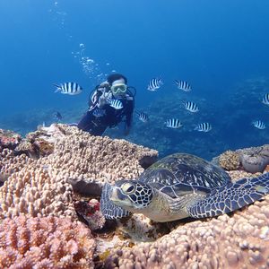 フレンドリーでとても親切なインストラクターさんでした!インストラクターさんのおかげでウミガメやキレイな魚たちと泳ぐことができました。また、ウミガメやお魚さんたちとの素敵な家族写真も撮っていただき、とても満足です!!船の上では観光スポットも教えてもらいました。とても充実したファンダイビングとシュノーケルで、家族で沢山思い出ができました。またぜひ参加したいです。素敵な思い出をありがとうございます!!
