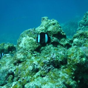 水深13m位まで潜り、巨大な岩の間を通り抜けたり、熱帯魚の群れに囲まれたりして、まるで竜宮城に居るかのような気分になりました。ニモに出てくるあの魚にも遭遇して、大満足です。また、ダイビング中の写真もデジカメでたくさん撮ってくれます。(一応1,000円で販売なのですが、体験談を書き込むことを約束すれば無料でもらえます)