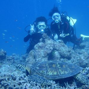 一人参加でのダイビングで、ダイビングをするのも久しぶりだったのですが、スタッフさんが優しくてよかったです♬とてもお話ししやすく、移動中も楽しかったです!!願った通りウミガメにも会えて、他にも魚に沢山会えよかったです(*´∇`*)送迎もあってとても助かりました!ありがとうございました!!!