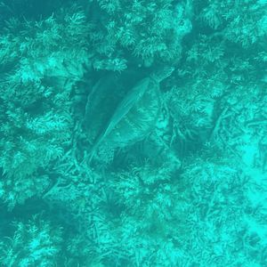 台風後で浅い所は濁りがありましたが、冲に出ると比較的綺麗な海中が眺められました。普段は1匹くらいしか見れないウミガメも乗った時間が良かったのか、5匹見ることができました。
