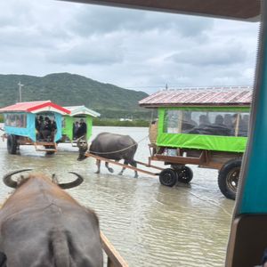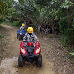 曇り空ではありましたが、バギーも水牛車もとても楽しく体験させていただきました。バギーは初心者でしたが、丁寧にレクチャーしていただき、ガイドの方が2名同行してくださったおかげで、安心して楽しむことができました。雨模様でしたが、長靴やレインコートを無料で貸していただけたため、服が汚れる心配もなく快適でした。コースには南国らしい植物や果物が多く、自然の雰囲気を十分に味わえたのも印象的でした。写真も撮影していただき、とても良い思い出になりました。30分があっという間でしたので、次回はぜひ1時間コースに参加したいと思います。