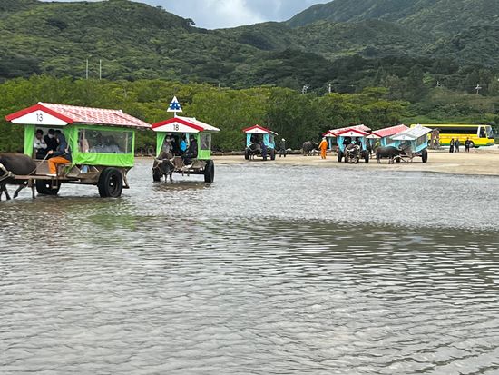 念願の水牛車とバギー体験: ずっと乗ってみたかった水牛車。三線の音色を聴きながらゆったりと海を渡る時間は、まさに想像していた通りの贅沢なひとときで、心から癒やされました。移動で乗ったバギーも、島の風をダイレクトに感じられてすごく楽しかったです!