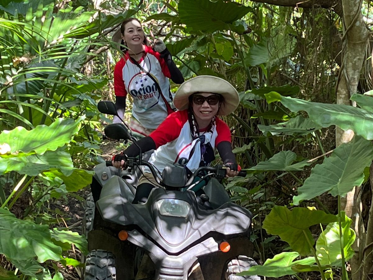 バギーは運転方法をレクチャーしてもらい、少し慣らし運転しながら練習した後は小グループに分かれていざ出発‼︎農園⁈のうっそうとした南国の植物が生い茂っているでこぼこな山道をガイドさんの後について滑走。途中植物や動物の色々な説明も交えてくれて為にもなった。慣れて来たらブンブン飛ばしてめちゃ気持ち良かった。ちょっとしたジャングル探検気分味わえて楽しかったです。