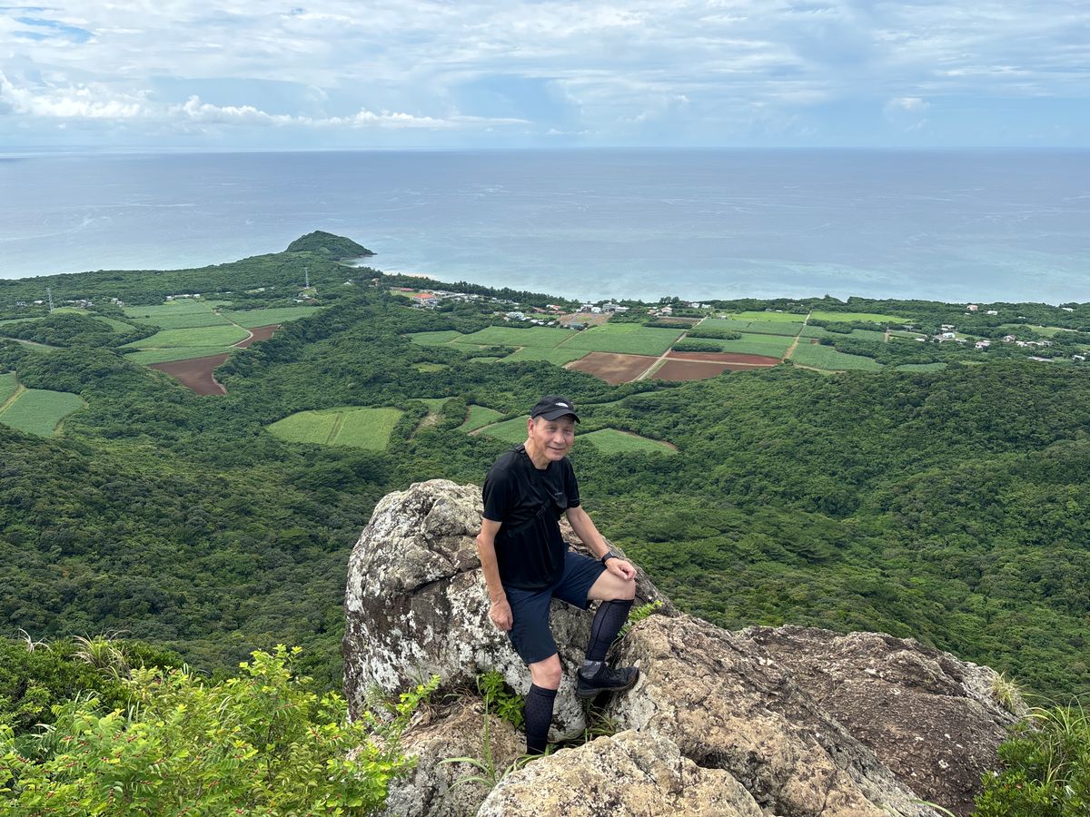 お腹いっぱいになったところで次はトレッキング。野底まーぺーに登りました。山頂近くからの見晴らしは最高でした。山の上からすぐ下に海、ガイドがいないと味わえない体験でした。先ほどいた海を上から見渡し本当に自然のすばらしさを感じました。