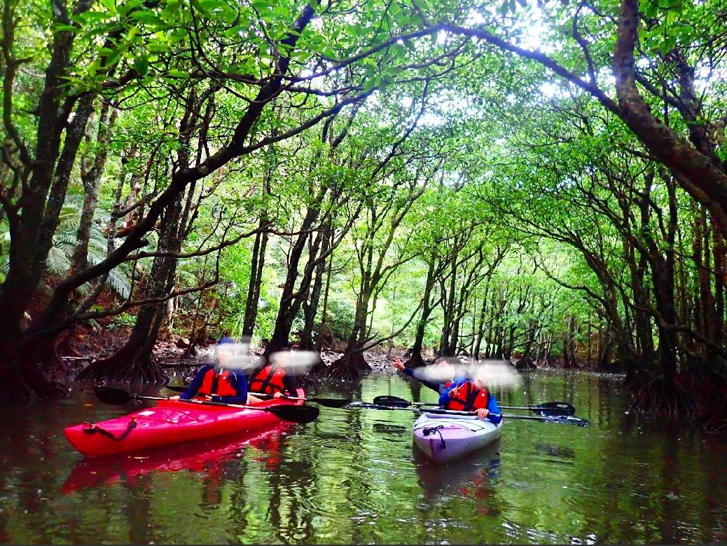 お正月明けの閑散期だったのか、カヌーは4人+ガイドさんで貸切でした!当日は、曇→雨の予報通り途中から小雨となってしまいました。しかし、むしろマングローブの緑の濃さが際立っていたような、本当に素晴らしい景色でした。はじめてのカヌーでしたが、予定より長く水の上に居るほど心地よい体験でした。次回は滝を見に行く1日のツアーに参加したいです。