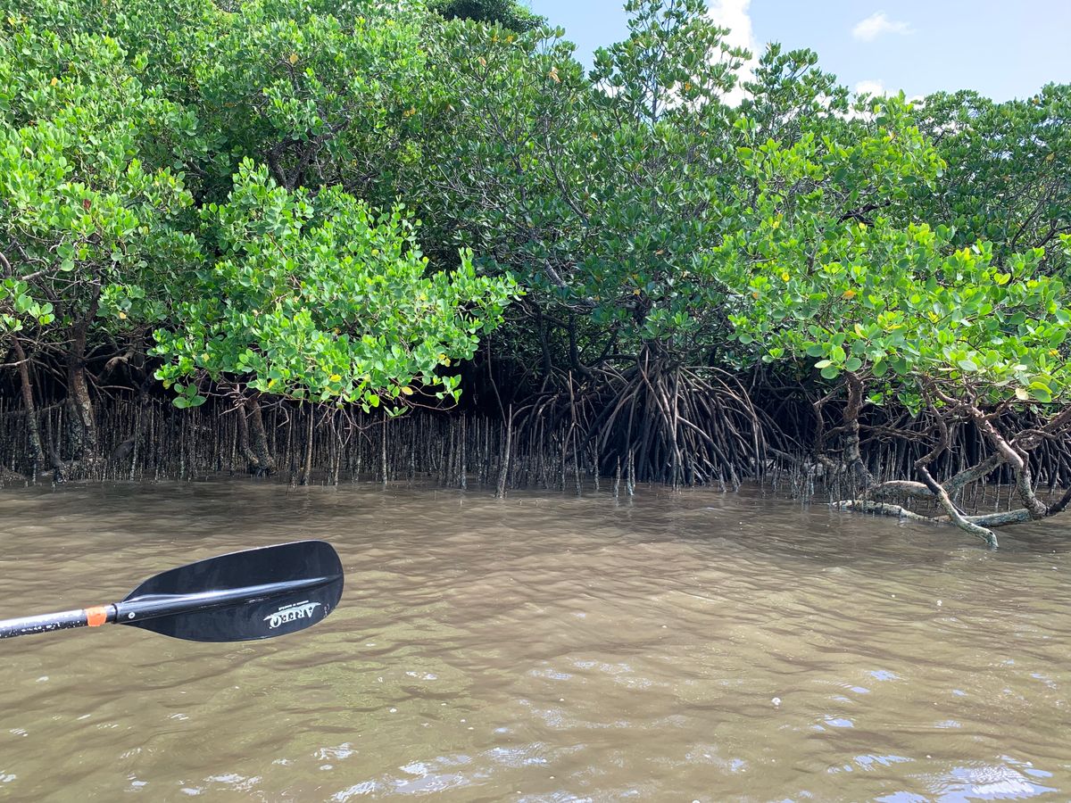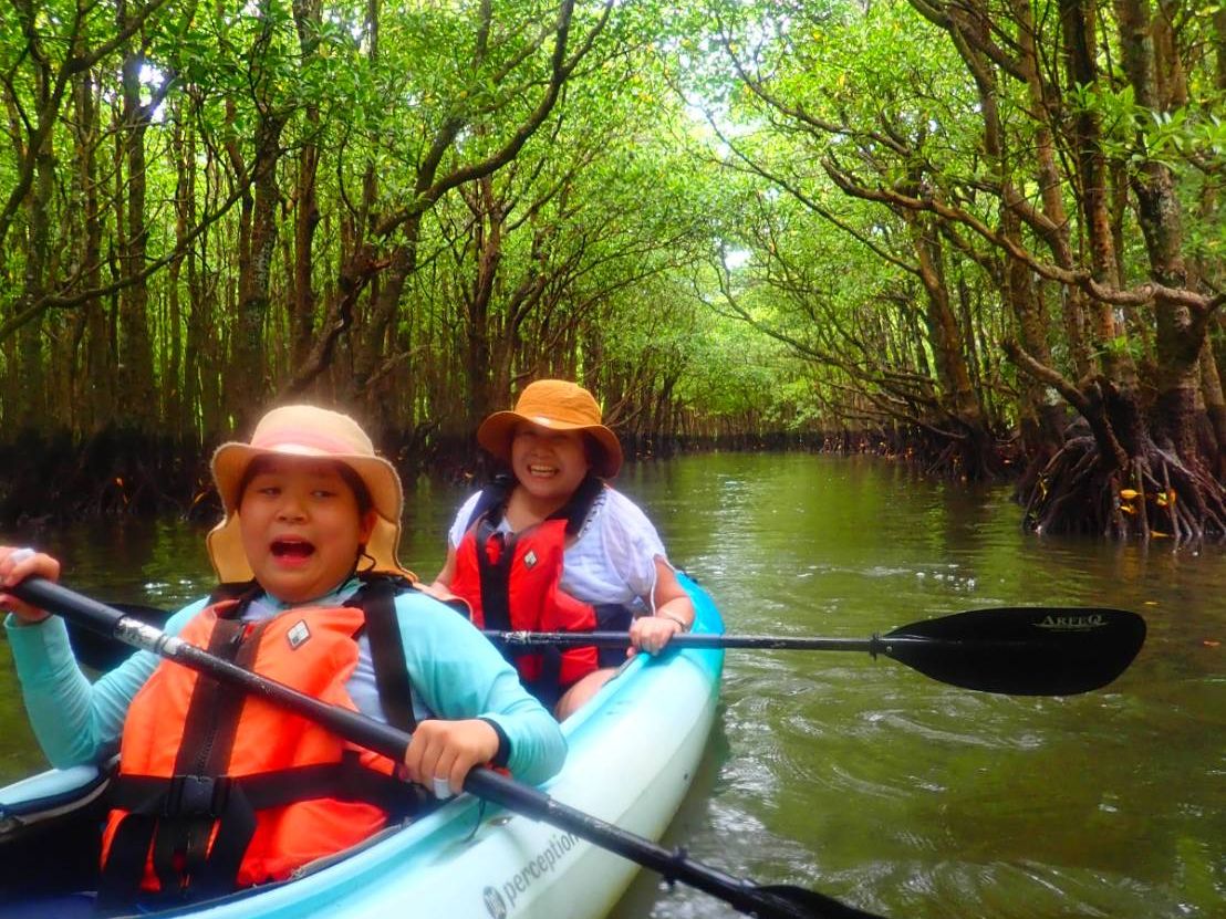 マングローブカヌーツアーに母子で参加しました。初心者のため、うまくこげず、ついていくのが大変でした。