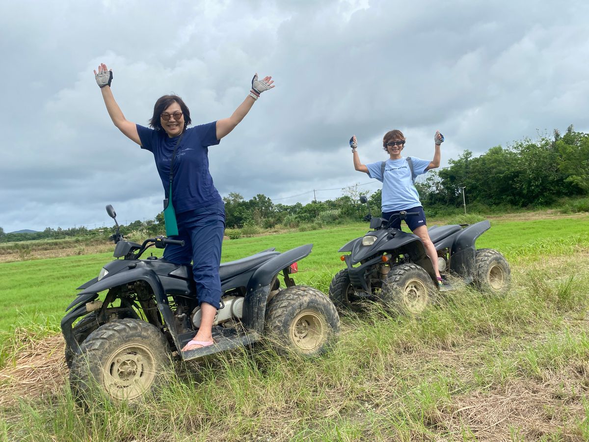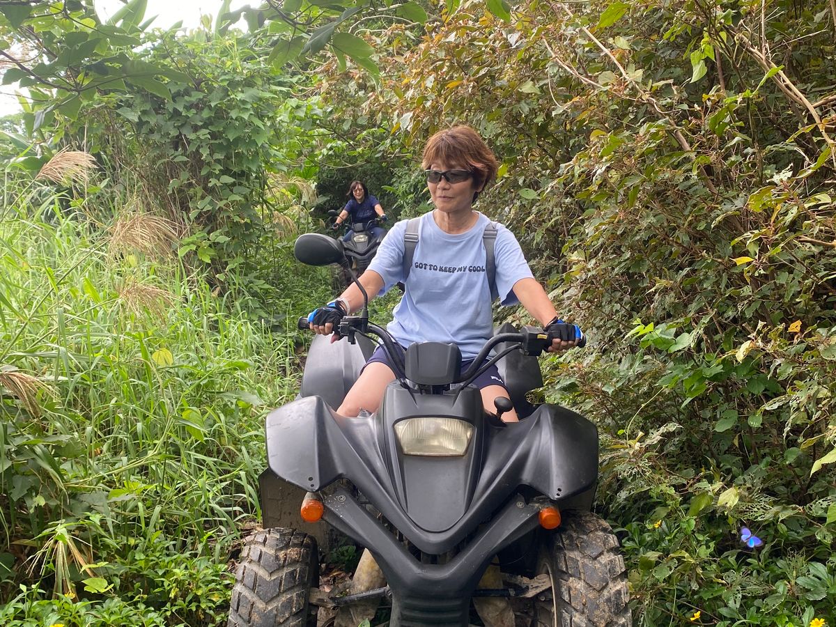 初めてのバギー体験。練習ではまっちゃんさんの指導が上手で、私達も運転できました。おしゃべりも楽しく、農道に公道にとコースも良く気持ち良く走ることが出来ました。