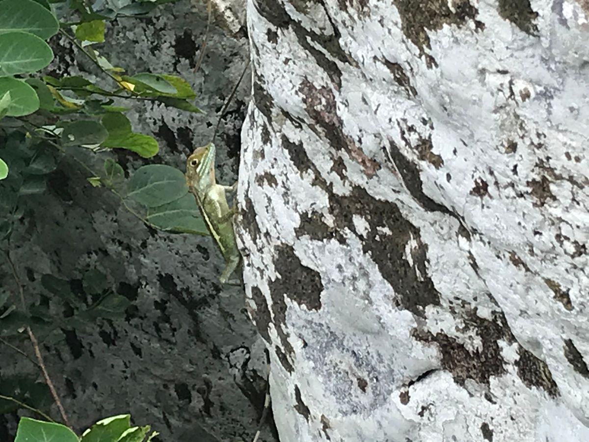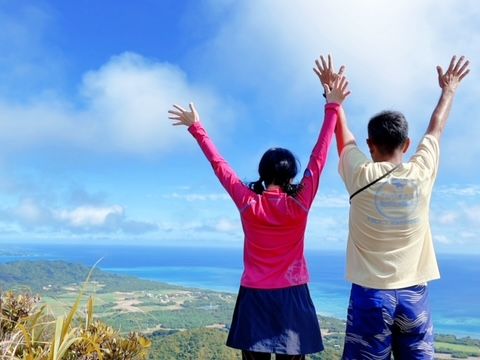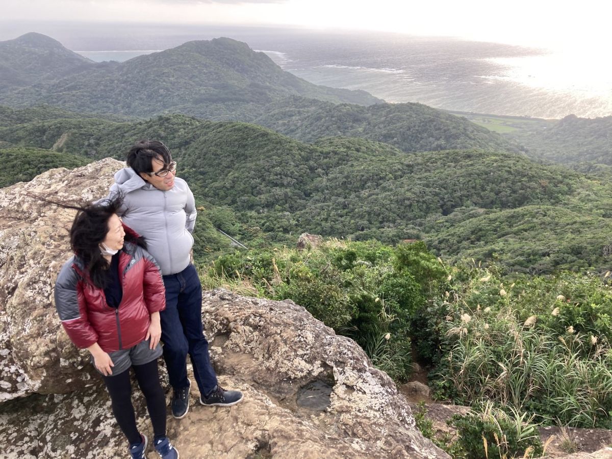 晴天に恵まれ、頂上では360度の眺望を楽しめました。下山途中には、セマルハコガメにも遭遇し、感激!ガイドのマコさんは写真を沢山撮ってくれ、鳴き声で鳥の名前を教えてくれたり、とても有意義な時間を過ごすことができました。