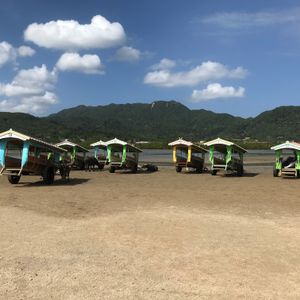 牛車 マングローブのクルーズと乗り物が色々変わって飽きません。クルーズは同じ風景で ずっとマングローブの説明で 鳥や蝶が飛んでてても、一切説明なかったので聞きたかったな〜。鳥の声が聞こえて説明聞きたかった。そこが物足りない感じではありますが。牛車はおじさんサボって 三線弾いてくれないことがありましたけどね。