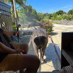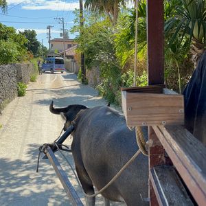 初めての水牛ツアーでしたが、石垣の歴史や水牛についてスタッフの方が丁寧に説明してくださったり、歌を聞かせてもらってすごく楽しめました。オリオンくんも自分のペースでゆっくり歩きのんびりとした雰囲気の中、町並みを見ることが出来ました。