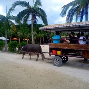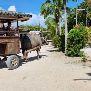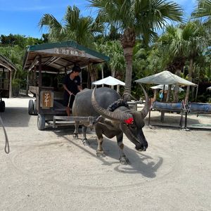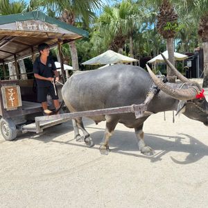 竹富島観光に行くなら水牛車に乗ってみたくて予約しました。7月のハイシーズンということもあり、平日でしたが当日予約は満席で出来ない状態なっていたので事前予約をしていって正解でした。水牛車は座っているだけで観光出来るのでかなり楽でした。水牛もおっとりしていて可愛く、スタッフの方の島唄も沖縄の雰囲気が味わえてよかったです!サイクリングや歩いている方もいましたが道に迷ってる人たちも見かけたので水牛車を選んでよかったなと思いました。帰りは各自解散になるので帰りの足を考えていた方がいいです。私たちはなにも知らずとりあえず近くのバス停に行き地域のバスの予約をして港まで戻りました。最後にスーツケースは持参しないほうがいいです笑。砂利道で歩くのが大変ですので。