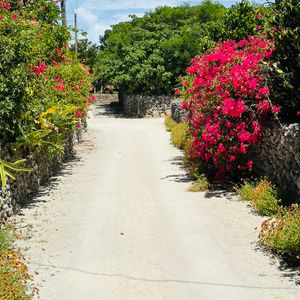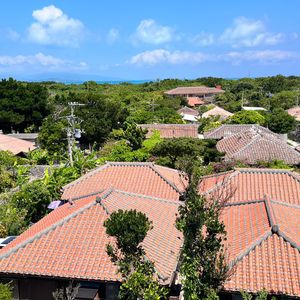 石垣港から高速船で約10分。石垣島からのアクセスも抜群の離島、竹富島(たけとみじま)。周囲約9kmの小さな島です。島には重要伝統的建造物群保存地区にも指定されている3つの集落があり、赤瓦の沖縄家屋が立ち並ぶ、風情溢れる光景が広がっています。そんな沖縄の原風景のなかを、自転車や徒歩でゆっくりと散歩するもよし、のんびり水牛車に揺られて非日常の世界にどっぷり浸かるのもよし。のどかな島時間を満喫しましょう。