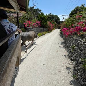 天気は小雨程度で少し悪かったですが、楽しめました。竹富島はフリーにしていたのですが現地でレンタルチャリを使いました。現地でも予約できますが、船着場から街(レンタルチャリ予約できるような場所)までは距離があり、私はたまたま車に乗せて頂きましたが、事前に予約しといた方がスムーズだと感じました。竹富島での水牛は乗って街を一周する感じです。一日とても楽しかったです。