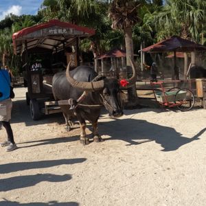 今回4人で参加させて頂きましたが、全員もう一回やりたい!というほど楽しい経験でした。最初は一人で運転する事に不安がありましたが、優しくレクチャーしてくれたり、着いていきやすいスピードで走って頂けるので安心でした。運転する前に雨が降り、適度に水たまりも出来て楽しかったです。その後はのんびり水牛に乗って、島の中を探索出来ました。なかなか普段は体験が出来ない事で思い出深いです。ただ乗っているだけではなく、水牛や島の紹介があって飽きずに20分ほど体験が出来ました。