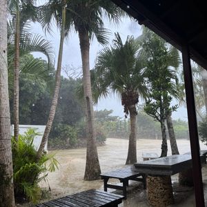 自転車で島内を散策中、天気が急変して土砂降り。雨具を持参した方が良いと思います。