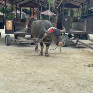 水牛車は個性的な牛たちを紹介してくれたり歌を聴きながら移動することができ穏やかな時間を過ごせます。食堂での昼食、牛とのふれあいコーナーや記念撮影、ジェラート屋さんもあるので時間が足りないくらいです