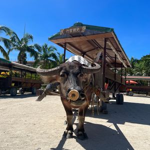 初水牛。やっぱり間近で見る牛さんは大きくてツノも立派!私たちを担当してくれたトミーは、竹富島からつけた名前で、ツノがハート♥️型のベテラン牛さんでした。竹富出身ではないらしいですが、のんびり、のーんびり三味線と唄を聴きながら沖縄の民家が見えて良かったです。最後に撮影写真もあり、トミーは、疲れたのか目を閉じてうとうとしていましたが、そこも可愛かったです。