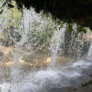 到着したサンガラの滝は、水が薄くカーテンのように流れ落ちていて、想像以上に幻想的でした。滝裏にも入ることができ、水しぶきとひんやりした風がとても心地よく、気持ちが一気にリフレッシュされました。