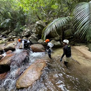 西表島のジャングル探検ツアーに参加しました。行き先も歩いて15分程度と小学校低学年がいる家庭でも問題ないありませんでした。途中でトカゲを捕まえるなど、むしろうちはもっと歩きたかったです。到着地の川(池みたいなところ)は足がつかないところですが、ライフジャケットを準備してくれているので、子供達も勝手に遊んでいました。岩の上からダイブするなど貴重な体験をさせてもらいました。