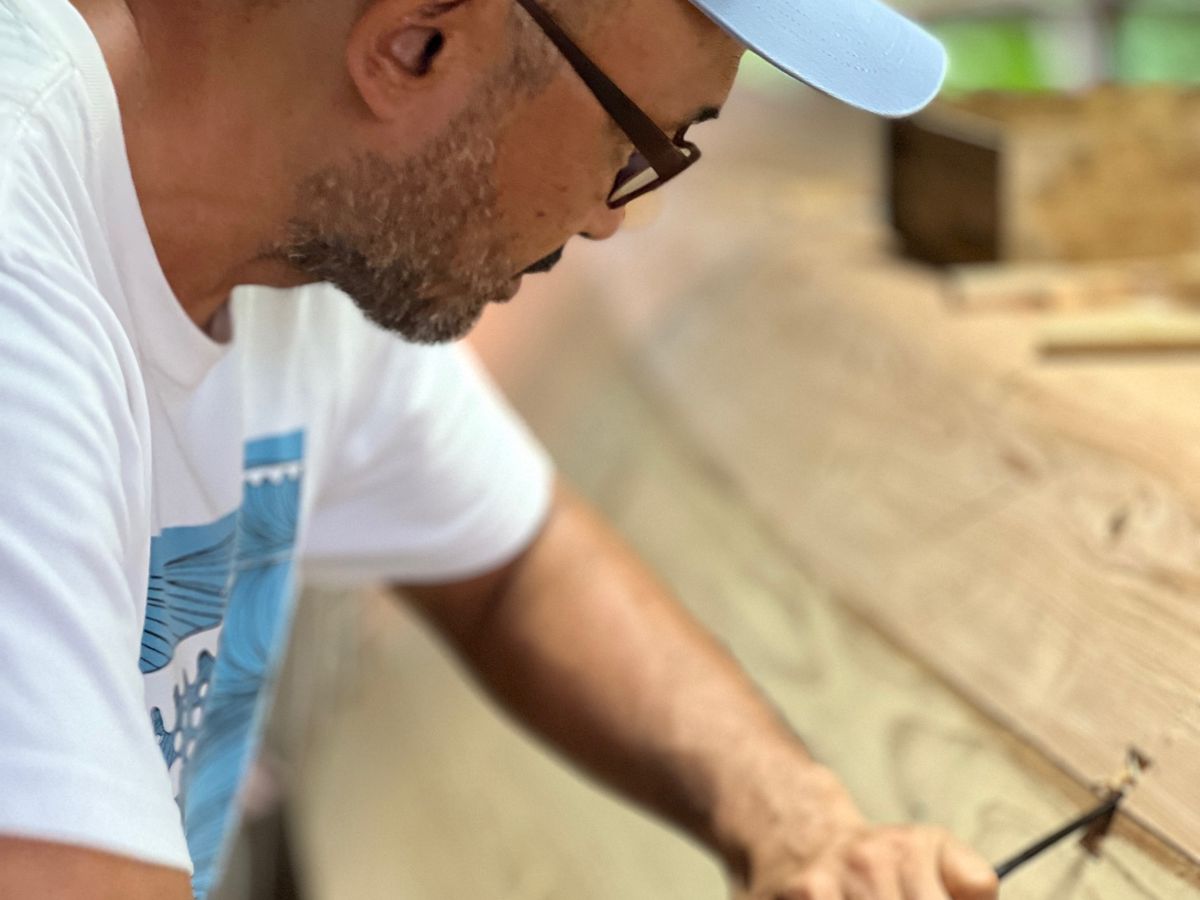 ツアーは、平久保半島に位置する久宇良集落の「吉田サバニ造船」から始まりました。代表の吉田友厚さんはサバニの伝統を守りながら、未来へとその文化をつないでいく情熱を持った方でした。吉田さんが語るサバニの歴史や、先人たちの知恵の深さに触れた瞬間、単なる船ではなく地域の暮らしや文化そのものを映し出す存在だと感じました。