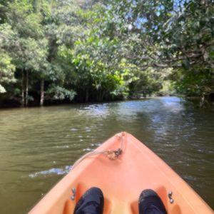 お弁当をいただいた後、カヌーに乗って浦内川をくだります。途中何度かカヌーを降りて休憩があったんですが、その時に滝の見学や、ジャングルに入っていったり、西表島の植物や歴史について教えていただいたり、ガイドの方が優しく教えてくださり、大満足でした!
