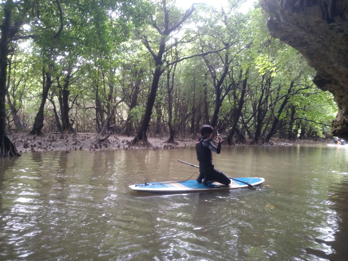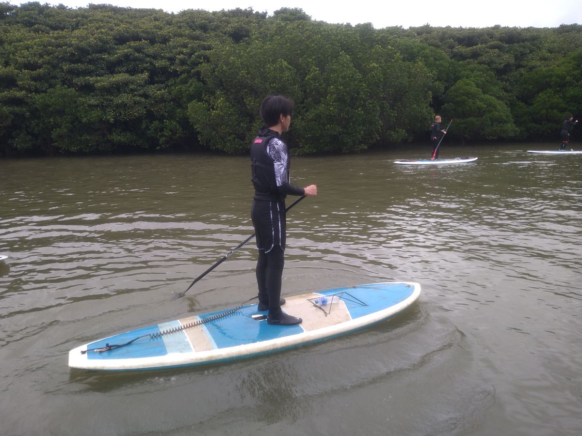 午前中はマングローブSUPに挑戦し、風が心配でしたがマングローブ林が防風林となってほとんど影響を受けずに南国特有の景色を楽しむことが出来ました。身体を動かすため寒さもあまり感じず、むしろ寒いぐらいの方が楽しめるように感じました。