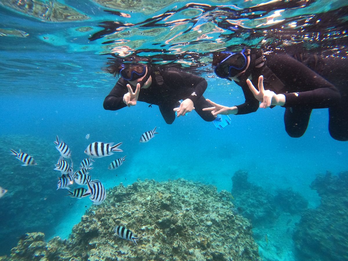 シュノーケリングは人生2回目の体験でしたが綺麗な海と色鮮やかな魚に癒されました。