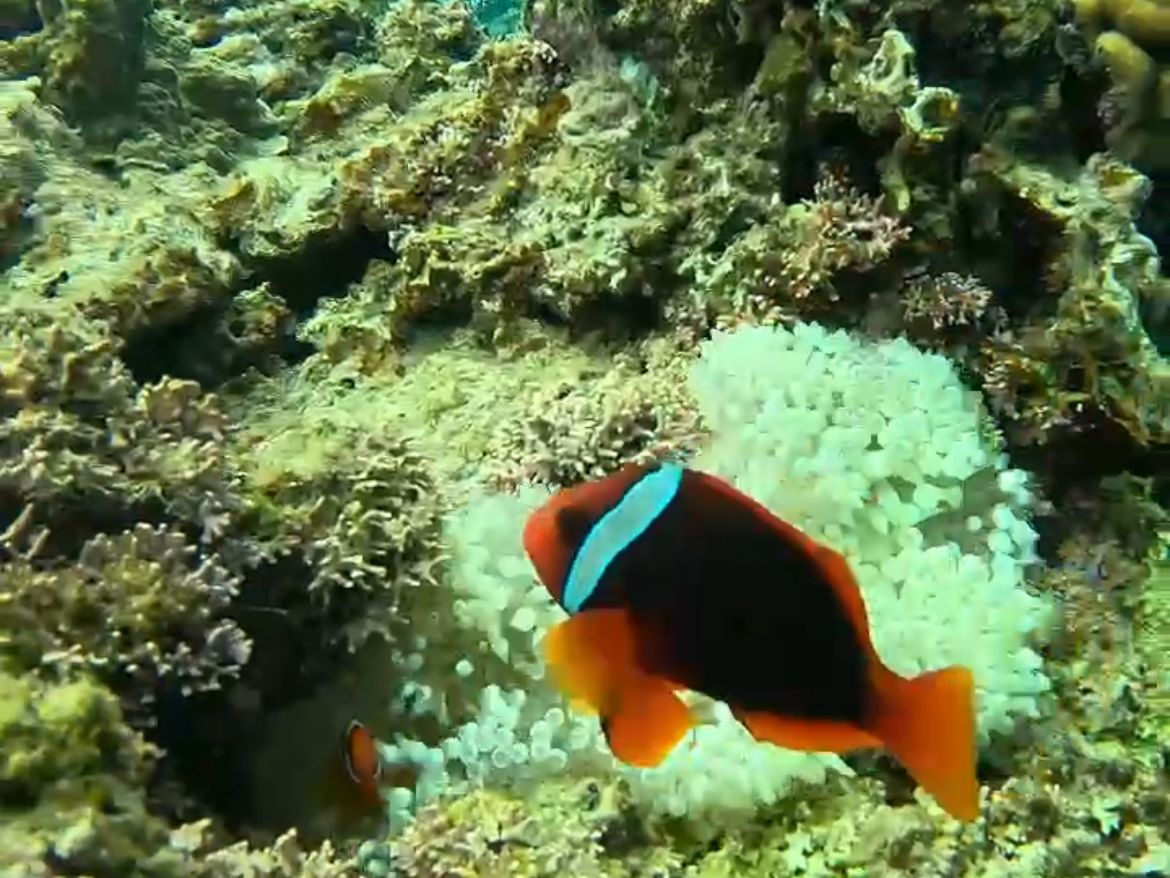 初めてのシュノーケリングで少し不安でしたが、そんな不安も吹っ飛ぶ美しさで、色とりどりの魚やサンゴに感動しました。