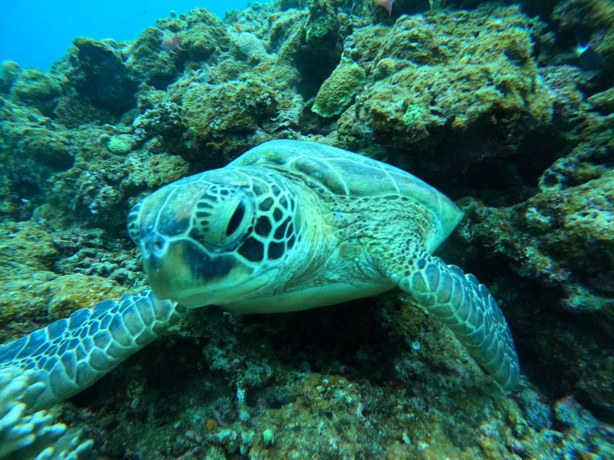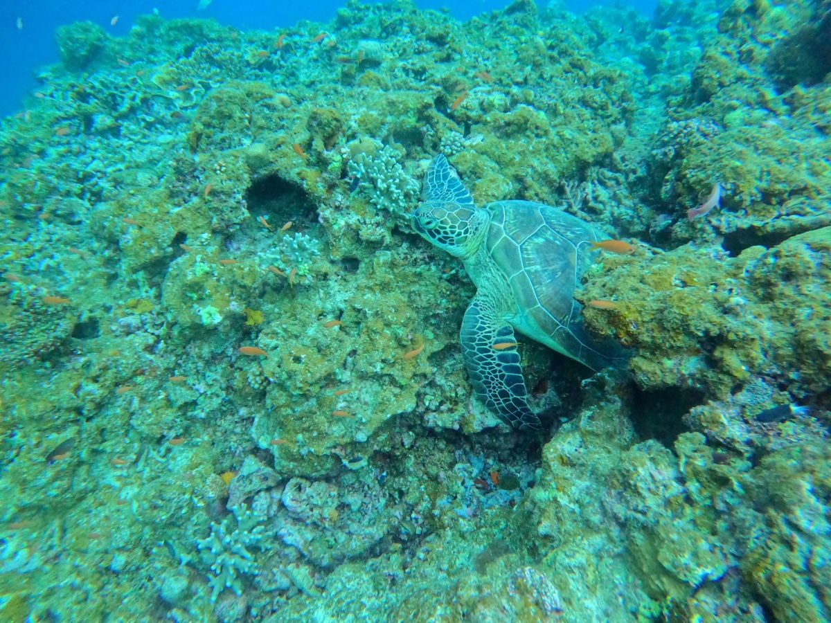 アオウミガメにも出会うことができてラッキーでした。