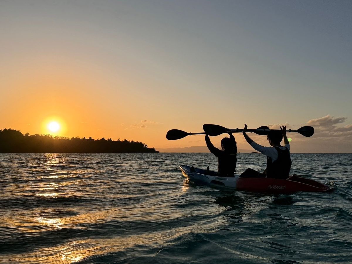 綺麗な海と夕陽を眺めながらのんびりとカヤックができました。
