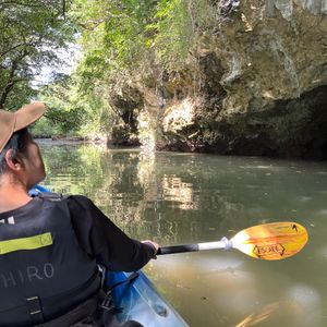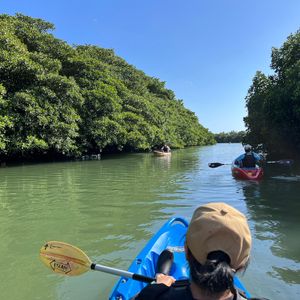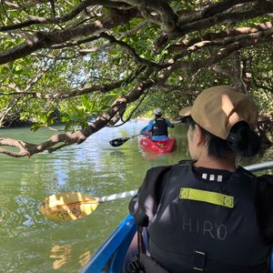 SUPは初体験で難しそうでしたが、だんだん慣れてくると自然の中でゆったりとした時間を過ごすことができました!コースの途中ではマングローブの間を抜けたり、鍾乳洞を見たりすることもできます。水面に近い分、カヌーよりも泳ぐ魚や蟹等、水中の様子を観察することができると思います。インストラクターの方が木々や生き物等、について色々教えてくださり、自然について学ぶこともできました。帰りの車内で写真を送っていただけたので、すぐに見ることができたのも嬉しかったです!